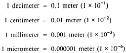 A unit of linear measurement, called a VARA of Spanish and Portuguese origin, was formerly used to measure land boundaries in those areas of the United States that were at one time under Spanish control. In those areas old deeds and other land instruments still contain property descriptions in varas, which vary from state to state and country to country from 32 to 43 in.Metric Units In many of the non-English-speaking countries of the world, the most commonly used basic unit of linear measure is the meter. The length of a meter was originally designed to equal (and does equal very nearly) one ten-millionth part of the distance, measured along a meridian, between the earths equator and one of the poles. A meter equals slightly more than 1.09 yd.The big advantage of the metric system is the fact that it is a decimal system throughout; that is, the fact that the basic unit can be both subdivided into smaller units decimally and converted to larger units decimally by simply moving the decimal point in the appropriate direction. Names of units smaller than the meter are indicated by the Latin prefixes deci-(one-tenth), centi- (one-hundredth), mini- (one-thousandth), and micro- (one-millionth), as follows: