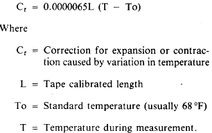 From the above formula, you can deduce that the correction for a 100-ft tape is about 0.00065