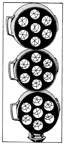 Figure 12-26.-Light wave reflector units, stacked. traffic is proceeding as usual, there is the ever-present idanger of being hit by a vehicle. In the midst of such a variety of constant dangers, the only way to prevent injury is by the exercise of continual care and vigilance. Every person in a party must be aware of all existing hazards, be able to recognize a hazardous situation, and be trained to take the correct preventive measures. Indeed, it is common practice for surveying field crews to prepare a CHECKLIST of essential items, personal protective equipment, communication gear, and other miscellaneous items relative to their line of work. |