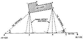 Figure 13-21.-Swing offset method of locating points.