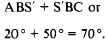 The figure shows you that BC lies in the second or SE quadrant; therefore, the full description of the bearing is S50E. Converting Bearings to Interior and Exterior Angles Converting a bearing to an interior or exterior angle is, once again, the same procedure applied for a different end result. Suppose that in figure 13-2, angle ABC is an interior angle and you want to determine the size. You know that angle ABS equals angle NAB, and therefore measures 20. You know from the bearing of BC that, angle SBC measures 50. The interior angle ABC is