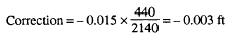 TBM 16 is 440 ft from the starting BM. The total length distance between the starting and closing BMs is 2,140 ft. The error of closure is 0.015 ft. The adjusted elevation of TBM 16 is 134.851-0.003 = 134.848 ft.
