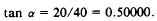 The angle with tangent 0.50000 measures (to the nearest minute) 2634. Therefore, angle FEH should measure