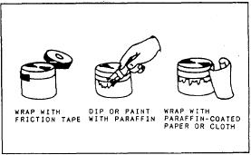 Figure 15-8.-Sealing a container to retain moisture content of a sample.obtained, sealing of the container is not required. If a longer time interval will elapse between sampling and testing, the containers may be sealed, as shown in figure 15-8. |