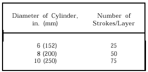 Table 15-6.-Number of Roddings to be Used in Molding Cylinder Specimens plates and squeezing out excess material to provide a cap that is as thin as possible. Sulfur caps may be applied in time to harden for at least 2 hr before testing. Plaster caps cannot be stored over 4 hr in a moist room. Neat cement caps must be aged 6 days or more in a moist room (2 days when Type II cement is used). During capping, protect moist, cured specimens against drying by covering them with wet burlap.Beam Specimens Tests are performed on concrete beam specimens to evaluate the flexural strength of the concrete. The standard beam specimen is 6 in. by 6 in. by 21 in. (152 mm by 152 mm by 532 mm) for concrete in which the maximum size of the coarse aggregate is 2 in. (50 mm). When the maximum size of the coarse aggregate exceeds 2 in. (50 mm), the smaller cross-sectional dimension is to be increased to at least three times the nominal maximum size of the coarse aggregate. All beam specimens prepared in the field are to be at least 6 in. wide and 6 in. deep unless required other-wise by project specifications.STANDARDS FOR BEAM MOLDS. The beam molds are to be smooth on all interior sur-faces and free from warpage. The molds are to produce specimens that do not exceed the required cross-sectional dimensions by 1/8 in. The length of the specimens is not to be more than 1/16 in. shorter than the specified length, but it may exceed that length.RODDING. Place the concrete in the mold in the required number of layers. (See table 15-5.) Rod the bottom layer throughout, distributing the strokes uniformly over the cross section of the mold. When rodding the upper layers, allow the rod to penetrate the previous layer 1/2 in., providing the previous layer is 4 in. or less and 1 in. if the previous layer is greater than 4 in. The number of strokes per layer is one for each 2 in.2 (13 cm2) of the top surface area of the specimen. After each layer is rodded, spade the concrete with a trowel along the sides of the mold to help in the removal of surface voids. Strike off the top surface with a straightedge, and finish it with a wooden float.CURING. YOU should cure the beam specimens in the same manner as the cylinder specimens with the following exceptions: (1) ex-tend the initial curing period to 48 hr 4 hr and (2) do not allow the surface of the beam specimen to become dry between the time of removal from curing and the completion of testing. When transporting specimens from the field to the laboratory, be sure they are sufficiently cushioned to protect them from damage by jarring. Additional measures are required to prevent damage by freezing temperatures and moisture loss. You can prevent moisture loss by covering the specimens with plastic or surrounding them by wet sand or wet sawdust. |