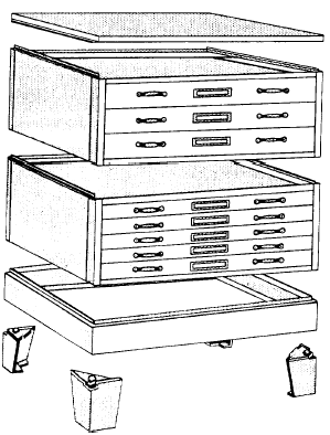 Cooperation If a project is to run smoothly and be completed on time, all crew leaders or supervisors must coordinate their work efforts and cooperate with one another as one big team. Most surveying operations are performed to guide the work done by other construction crews. You must therefore work closely with other crew leaders to ensure that your surveys are timely and do not delay the overall project. Cooperation with other supervisors will eliminate many problems that would otherwise arise when you are coordinating work efforts. In effect, you are merging your ideas and efforts to make the project run smoothly. Cooperation is also essential to your success as a drafting supervisor. Consult the Builder crew supervisor on design problems and construction methods. Spending too much time on unnecessary details could delay the job if the Builders are awaiting the drawings to start the job. So right from the start, get into the habit of cooperating with other supervisors, and you will soon gain their respect as well as the respect of your superiors and your crew members.Maintaining file records, or simply "filing," is one job an EA needs to learn fast and well. When you are transferred to a new unit or command, chances are good that you will be involved in organizing and keeping track of a variety of engineering drawings normally found in the drafting and reproduction section. Your biggest challenge in filing is to make it possible for any single drawing (sheet), as well as the record pertaining to that particular drawing, to be readily located. Since most filing cabinets or protected stowage receptacles are limited in space, you may develop an ingenious approach to a highly organized filing system.You must keep in mind that each engineering drawing is commonly identifiable by a drawing number assigned by the agency (such as NAVFACENGCOM) that made the drawing. The first major file breakdown for drawings, then, is a breakdown into separate files for the different agencies that have supplied the drawings. Within each agency file, the most convenient way to file drawings and prints is by the numerical sequence of drawing numbers.Filing Original Copies Original drawings and sepia copies are filed flat-NEVER folded. For large size originals, use shallow-drawer file cabinets of the type shown in figure 16-3. Smaller size drawings are generally