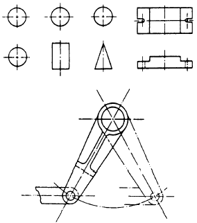 Figure 3-24.-Use of center lines. VISIBLE LINES The visible edge lines of the view are drawn as solid, thick lines. These include not only the outlines of the view, but lines defining edges that are visible within the view. (See fig. 3-25.) |