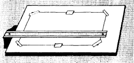 THE BOARD Now that you have become relatively familiar with your equipment and materials, it is time to get started by attaching your drafting paper to the board. The sheet should be placed close to the left edge of the drafting board. Working in this area makes the T square easier to handle and reduces the likelihood of error because of T square "swing." The drafting sheet should be far enough from the bottom of the board (about 3 in.) to ensure firm support for the head of the T square when you are drawing at the lower part of the sheet. A drawing sheet properly attached to the board on which a T square is used is shown in figure 3-2. After aligning the drawing sheet, smooth out any wrinkles and fasten the four corners with short strips of drafting tape. If you are attaching large sheets, you should place