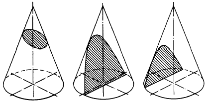 Figure 4-43.-Conic sections: ellipse, parabola, and hyperbula (left to