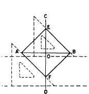 Figure 4-18.-Square with a given length of side. and B, intersecting the diagonals. Then connect the points of intersection.SQUARE: GIVEN LENGTH OF DIAGONAL Figure 4-19 shows a method of constructing a square with a given length of diagonal. Draw horizontal line AB, equal to the given length of the diagonal. Locate O at the center of AB, and lay off CD through O, perpendicular to and