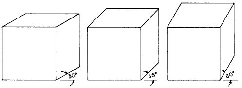 Figure 5-52.-Angles of 30 degrees, 45 degrees, and 60 degrees are normally chosen for the receding axis in oblique projection because they are easily drawn with triangles. .