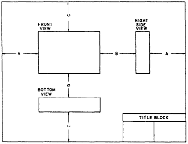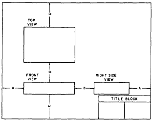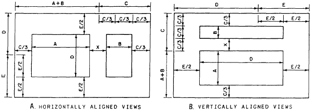 Figure 5-14.-Proper spacing of views on a three-view projection.