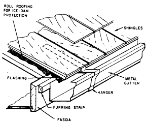 Figure 6-60.-Gutters and downspouts: A. Half-round gutter; B. Formed gutter; C. Round downspout; D. Rectangular downspout. |