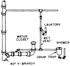 such as a lavatory, water closet, and shower,