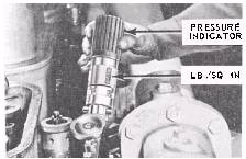 AND FIRING PRESSURES Readings of the compression and firing pressures must be taken every 200 hours for the trend analysis graphs. They may also be taken at other times when engine operating conditions require additional monitoring such as when an engine misfires, fires erratically, or when any one cylinder misfires regularly. There can be many reasons for an engine to misfire, some of these are a clogged air cleaner/filter, an engaged fuel cutout mechanism, or a loss of compression. If, after checking the air cleaner, the filter, and the fuel cutout mechanism, you determine that the problem is due to loss of compression, then you must perform a compression check with a cylinder pressure indicator. There are several different types of indicators that may be used. Most indicators used with diesel-cylinder engines are either of the spring balanced type or the trapped pressure type. They are manufactured by various companies such as Kiene, Bacharach, and Kent-Moore. Some of these indicators measure only compression pressure, others measure both compression and firing pressures. Spring Balanced Indicator A spring balanced indicator, such as the one manufactured by Bacharach (figure 3-1), employs a spherical ball piston, which is held on its seat by the force of a helical spring actuated by the cylinder pressure which acts against the bottom of the ball piston to oppose the spring tension. Before the indicator is attached to the engine, the vulcanized handle must be rotated clockwise until the reading on the counter is greater than the maximum cylinder pressure expected. The amount of this pressure is listed in the engine manufacturers technical manual. When the indicator is installed, the operator must make sure that it is placed as near the cylinder as possible and position it so that it can be read easily. After the indicator is installed the engine is operated at the specified rpm, then the fuel to the cylinder