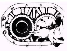 Figure 3-26.Checking the backlash of blower rotor gears. The minimum clearance is found in a similar manner except that rotor lobes are held in such a position as to take up all slack and backlash. The difference of the two clearance readings is the value of the backlash of the rotor lobes. Since a change in lobe clearance is normally caused by wear of the gears, the gear clearance must be checked. The most direct method for checking gear clearance is by the use of feeler gages. (See figure 3-26.) Any gear set which has excessive lash or shows any sign of fracture must be replaced with a new set. Since blower drive gears come in matched sets, gears from different sets must not be interchanged. |