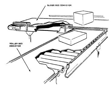 CRANES Before you begin to adjust, repair, or do inspections on a crane, the following precautions must be observed and implemented as applicable: 1. The crane to he repaired must be positioned in a location where it will cause the least interference with other cranes or ships operations. 2. The boom must be placed in the stowed position when work on the topping system is to be accomplished. 3. All controls must he placed in the OFF position. 4. The power supplies must be de-energized and the power supply breaker (in the OFF position) must be tagged DANGER, except as required for testing or adjustments. 5. Maintenance may be performed on energized electrical equipment only when specifically authorized by the commanding officer. 6. After completion of adjustments or repairs, the crane should not be restored to service until all guards have been reinstalled; safety devices are reactivated; maintenance equipment is removed; and all required testing is completed. Figure 8-9.Powered belt conveyor.