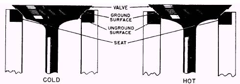 Figure 3-14.Excessively band-ground valve. assemble and disassemble a valve assembly. Before you reassemble a valve assembly, be sure to thoroughly clean and inspect the valve spring. (Use kerosene or diesel fuel for cleaning. NEVER use an alkaline solution; it will remove the protective coating.) The condition of the surface of a valve spring is the best indication of impending failure. (Use magnafluxing to help find cracks that would otherwise be invisible.) The free length of a valve spring should be within the limits specified in the manufacturers technical manual. If such information is not available, compare the length of a new spring with that of the used spring. If the length of the used spring is more than 3 percent shorter than that of the new spring, replace the used spring immediately. Remember, however, that loss of spring tension will NOT always show up as a loss in overall length. Springs may be the proper length, but they may have lost enough tension to warrant replacement.