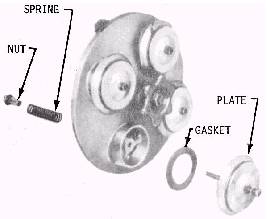 Figure 3-7.A safety handhole cover. under normal operating conditions. In the event of a crankcase explosion or extreme pressure within the crankcase, the excess pressure over-comes the spring tension, and the plate in the safety cover acts as a vent to allow combustible gases to escape to the atmosphere. This release of excess pressure serves to minimize damage to the engine. |