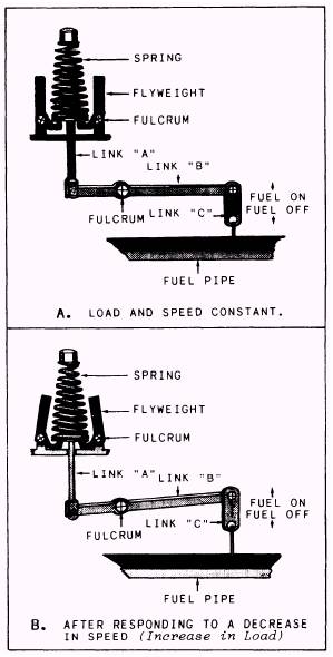 DEVICES IN A DIESEL ENGINE In this section of the chapter, we will discuss the methods and the devices that serve to control the output of the injection pumps and injectors. By controlling the output of the fuel injector system, these devices ensure control of engine operation. GOVERNORS A governor is a speed-sensing device on an engine that serves to maintain a constant speed (in rpm) within the design power rating of a diesel engine. A governor may also serve to limit high-and low-idle revolutions per minute of the engine. All governors used on diesel engines control engine speed by regulating the amount of fuel delivered to the cylinders. An example of engine control without the use of a governor is in the conventional automobile-the engine speed and engine load changes are sensed by the driver. The drivers movement of the throttle is an extension of a conditioned reflex; in other words, the driver acts as the governor. However, the driver will not be capable of reacting to load and speed changes quickly enough insofar as the diesel engine is concerned. This is because a diesel engine can accelerate at a rate of more than 2,000 rpm to meet certain requirements. The exacting duty of maintaining a constant speed is better accomplished by a governor.