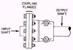 Figure 12-1.-Flange-type solid coupling. crankshaft by a nut, as in the P-250 centrifugal fire pump. Solid couplings offer a positive means of transmitting torque from the crankshaft of an engine; however, a solid connection does not allow for any misalignment between the input and output shafts, nor does it absorb any of the torsional vibration transmitted from the engine crankshaft. Flexible Couplings Since solid couplings do not absorb vibration and do not permit any misalignment, most direct drives consist of a flexible coupling, which uses a flexible member or element to connect two flanges or hubs together. Connections of the flexible type are common to the drives of many auxiliaries, such as engine-generator sets. Flexible couplings are also used in indirect drives to connect the engine to the drive mechanism. The two solid halves of a flexible coupling are joined by a flexible element. The flexible element may be made of rubber, neoprene, a steel spring, or gears. An example of a grid-type flexible coupling that uses a steel spring (view A) and a gear-type coupling (view B) are shown in figure 12-2. |