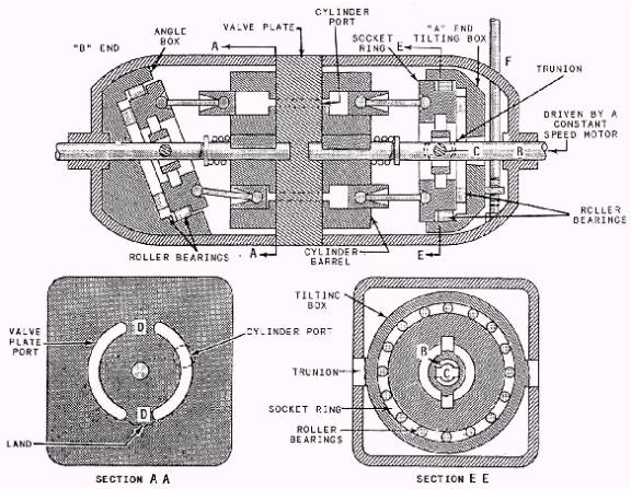 Figure 13-13.-Axial-piston hydraulic speed gear. ensure adequate circulation of the liquid at the seal faces to minimize the deposit of foreign matter on the seal parts. |