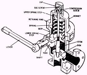 VALVES There are many types of automatic pressure control valves. Some of them merely provide an escape for excessive pressures. Others reduce or regulate fluid pressure. Relief Valves Relief valves are installed in piping systems to protect them from excessive pressure. These valves have an adjusting screw, a spring, and a disk. The force exerted on the disk by the spring sets the relieving pressure. Most relief valves simply open when the preset pressure is reached and close when the pressure drops slightly below the lifting pres-sure. Many relief valves will also have a lever so the valve can be opened by hand for test purposes. Figure 13-25 shows a relief valve of this type.