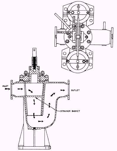 Figure 15-8.-Feedwater duplex strainer. and then the clogged basket can be opened, cleaned, and prepared for service. |