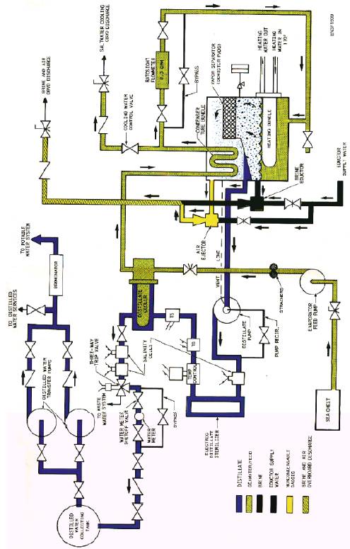 SUMMARY In this chapter, we have discussed two types of low-pressure distilling plants: the submerged-tube unit and the flash-type unit. You should be able to identify the individual components of these distilling plants and how they contribute to the overall process of distillation. As an Engineman, you should be able to identify the ways in which these plants differ. You should also be able to identify the requirements that the distillate must meet for it to be usable. If you are unclear in any of these areas, go back and review this chapter before continuing to chapter 16.