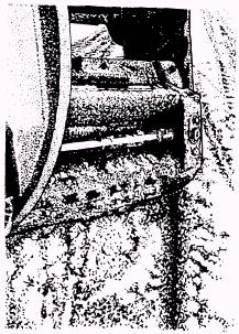 Figure 10-23.-Marking cut. To scarify extremely hard or consolidated material, remove alternate scarifier teeth. This will ease passage of the scarifier through the material. CAUTION Never make sharp turns with the scarifier teeth in the ground. Making sharp turns damages the scarifier and possibly bends or breaks the teeth. During prestart operations, check the scarifier teeth for wear. When the caps are worn enough to cause damage to the shank, replace the cap (fig. 10-22).