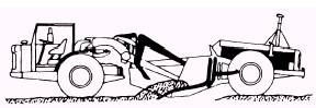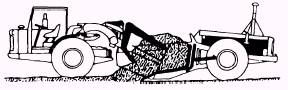 Figure 10-38.-Scraper control levers. the bowl. The third lever is the ejector lever (fig. 10-39, view C). The ejector lever forces the dirt out of the bowl. For maximum hydraulic cylinder operating efficiency, the engine should be operated at maximum rated speed and the control levers moved to their extreme operating position. SCRAPER OPERATIONS The greatest engine power is available when the engine is running at top governed speed. The proper transmission gear ratios must also be engaged to obtain maximum engine power output. When the transmission is placed in a too high a gear ratio for full engine power, the result is a stall condition in the transmission converter. Stalling the converter prevents the engine from operating at maximum efficiency and results in rapid overheating and premature wear of the converter or transmission. The transmission must be downshifted correctly while the scraper is in motion to prevent damage to the power train. Improper downshifting overspeeds the transmission and engine and usually results in premature wear and unnecessary transmission breakdowns. When moving the scraper from a full stop, always start with the transmission in low gear, depressing the throttle for the degree of acceleration required. A wide, open throttle provides the fastest acceleration under full-load conditions. When running downgrade, avoid overspeeding the engine by keeping the scraper speed at, or below, the maximum speed for the transmission range engaged. As a general rule, downhill scraper speed should not exceed 5 mph more than that attained on level ground in the transmission ratio engaged. When the selected transmission ratio is too high, slow the scraper with the service brakes until the transmission can be properly downshifted to the required range for the grade. Downhill speed can be slowed, if necessary, by lowering the scraper bowl until the cutting edge drags enough to slow the scraper to the required speed to permit proper downshifting or stopping. Do not fan the brakes by repeated depressing and releasing. This practice can reduce air pressure below the point required for proper breaking. The air pressure system should indicate 105 to 125 psi on the air pressure gauge for effective braking. When the gauge indicates a pressure drop below 105 psi for a long time, shutdown the scraper until the trouble is corrected.