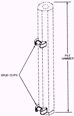 Figure 12-58.-Spud clips mounted to one side of the piledriving hammer.