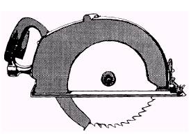CHAIN SAW The chain saw (fig. 14- 17) is a heavy-duty pneumatic device, designed primarily for cutting trees or timbers up to 24 inches in diameter during clearing operations. The chain saw is also used to accomplish heavy timber construction, such as bridges, bunkers, and culverts. NAIL DRIVER The pneumatic nail driver (fig. 14-18) is a lightweight member of the reciprocating percussion family of tools and used primarily for driving large nails, spikes, and driftpins in heavy timber construction. When the nail driver is equipped with the proper attachment, it may also be used for other purposes, such as riveting, shearing heads from bolts and rivets, and removing scale and rust from metal plates or objects. DRILL The pneumatic drill (fig. 14-19) is a heavy-duty low-speed tool, designed to drive ship auger type of drills. The pneumatic drill is used extensively in trestle bridges and other timber construction work where it is necessary to drill holes for bolts or pins. CIRCULAR SAW The pneumatic circular saw (fig. 14-20) is built for heavy-duty use on timber construction work and maybe used for ripping as well as crosscut sawing. When the circular saw is equipped with the appropriate abrasive disk, designed for the specific material to be cut, it may also be used to cut brick, stone, concrete, tile, and similar materials. SAFETY Safety rules for pneumatic tools are as follows: . Keep your hands and fingers off the trigger or throttle until you are ready to start the tool. . Always keep your balance. . Never get your face close to the tool.
