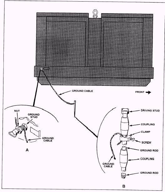 Figure 14-30.-Grounding procedure. NOTE: All components shown in figure 14-31 marked with an asterisk should NOT be pressure-washed because excessive water will cause moisture damage. The only method to clean these components is to wipe them down with clean rags. LUBRICATORS The most common lubricators, used in the NCF, are portable skid-mounted (fig. 14-32) or truck-mounted. When automotive and construction equipment is