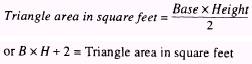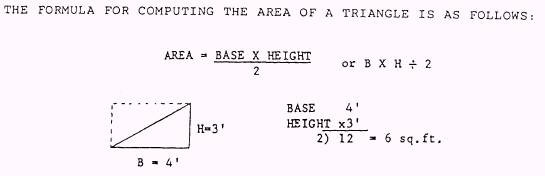 Figure 15-17.-geometric sections of a cross section. 15-13 To compute the square feet area of a SQUARE or RECTANGLE (fig. 15-18), use the following equation: Area = Base x Height or (A = B x H). Since a RIGHT TRIANGLE is a square or rectangle cut in half diagonally, the same equation can be used to compute the area and the result divided by 2 (fig. 15-19). For example,