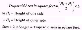 Another geometric figure you may encounter in a cross section is a TRAPEZOID (fig. 15-20). The equation to compute the area of a trapezoid is as follows: