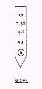 Figure 15-32.-Difference in elevation between the offset stake crowfoot and desired grade at center stake. 15-19 centerline stake would be marked for a fill to reach the same elevation. Slope Stakes The identification markings on slope stakes may vary according to survey parties; however, the symbol SS is the most commonly used slope stake symbol. The information normally found on a slope stake (fig. 15-33) is any cut-or-fill requirements, the distance from the center line, and the slope ratio. When it becomes necessary to offset the slope stake, the offset distance from where the slope stake should be is written at the bottom of the offset stake. Slope stakes indicate the intersection of the cut-or-fill slope with the existing natural groundline and limit of earthwork on each side of the center line (fig. 15-34). Right-of-Way Stakes Stakes set on the property line of a construction site are known as right-of-way stakes. These stakes
