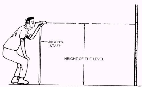 Figure 15-38.-Using a Jacob's staff with a hand level.