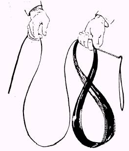 Figure 15-55.-Woven tape. with the 90-foot mark, the 85-foot mark, the 70-foot mark, and so forth, until you have gathered in the entire tape. You will find that the tape now forms a figure-ofeight, as shown in figure 15-56. The figure-of-eight can be formed into a circular coil, as shown in figure 15-57.