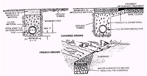 Figure 15-65.-Typical sections of covered and french drains.