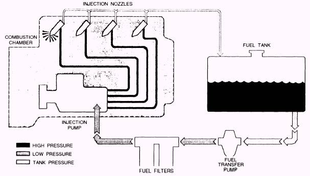 Figure 1-29.-Diesel fuel system. mixture in the cylinders for the harder job of starting at low temperature. |