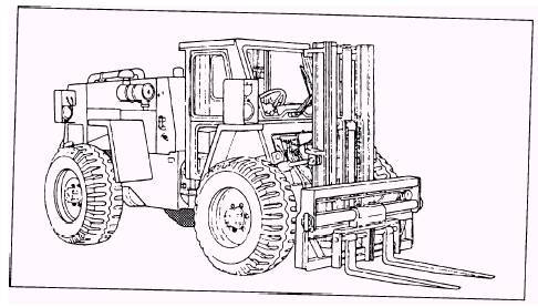 CHAPTER 8 FORKLIFTS The forklift is a primary piece of equipment that is essential to the mission of the NCF. Forklifts are used to support construction operations whenever there is a need to lift, load, or unload materials or supplies. Because of the variety of makes and models of forklifts used in the Navy and the NCF, this chapter covers only the characteristics and basic principles of operations of forklifts. By reading the operator's manuals, you can obtain detailed information about each make and model. MATERIALS-HANDLING EQUIPMENT Forklifts are classified as materials-handling equipment. The term materials handling describes an ongoing activity for every construction project or operation that requires the picking up and moving of raw materials, processed parts, finished products, tools, equipment, supplies, or maintenances items. Every operation that requires raising, lowering, or moving an item is classified as materials handling. Since materials handling involves lifting, lowering, and moving in some form, forklifts excel over other methods of handling. Forklifts are specifically designed to ensure efficient handling of materials under varied conditions. Design specifications and performance characteristics of forklifts define their capabilities and limitations under adverse conditions. To operate a forklift efficiently, you must know its capabilities and limitations. This chapter covers the capabilities, limitations, attachments, and principles of operation of warehouse and rough terrain forklifts. WAREHOUSE FORKLIFTS The most common types of warehouse forklifts used are either electric-, gasoline-, or propane-powered and have solid, semisolid, or pneumatic rubber tires. These forklifts are used in warehouses or on hard-surfaced outdoor storage areas. The warehouse forklift (fig. 8-1) is a unit designed to pickup, carry, and