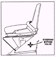Figure 8-6.-Steering bypass valve. CAUTION Verify that the steering bypass valve is closed before operating the 4K forklift. 5. Remove the safety pin (fig. 8-3), if installed. The safety pin must not be installed when the forklift is being towed. CAUTION Before pushing the forklift, install the safety pin to prevent the forklift from articulating and damaging the tow bar. NOTE: Do not tow the forklift faster than 35 mph. |