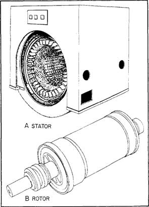 Figure 12-3.-High-speed, turbine-driven alternator. enclosed metal structure is part of a forced ventilation system that carries away the heat by circulating air through the stator (view A) and rotor (view B). |
