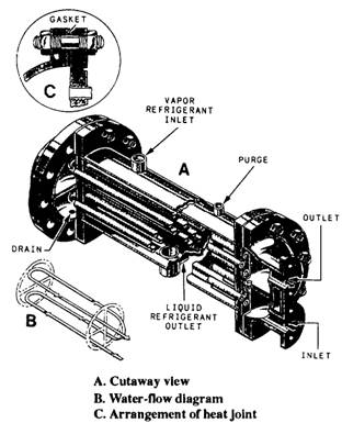 Figure 10-7.-Water-cooled condenser for an R-12 refrigeration system. |