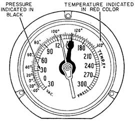 Figure 10-12.-Compound R-12 pressure gauge. liquid. Because of R-12's low boiling point at atmospheric pressure, you must always protect your eyes from contact with liquid R-12; the liquid will freeze the tissues of the eyes. Always wear goggles if you are to be exposed to R-12. R-22 (CHClF425) and R-11 (CC1435F) are colorless, nonexplosive, nonpoisonous refrigerants with many properties similar to those of R-12. Because of the similarities between R-22, R-11, and R-12, only R-12 is discussed. Mixtures of R-12 vapor and air, in all proportions, will not irritate your eyes, nose, throat, or lungs. The refrigerant will not contaminate or poison foods or other supplies with which it may come in contact. The vapor is nonpoisonous. However, if R-12 concentration becomes excessive, it can cause you to become unconscious or cause death because of lack of oxygen to the brain. R-12 is nonflammable and nonexplosive in either a liquid or vapor state. R-12 will not corrode the metals commonly used in refrigerating systems. R-12 is a stable compound capable of undergoing the physical changes required of it in refrigeration service without decomposing. It is an excellent solvent and has the ability to loosen and remove all particles of dirt, scale, and oil with which it comes in contact within a refrigerating system. HALOCARBONS HaloCarbons are organic chemical compounds containing hydrogen and one or more atoms of carbon, fluorine, bromine, chlorine, or iodine. These elements may be present in various combinations in the compound. WARNING Refrigerants are halocarbons. Personnel working with refrigerants may be injured or killed if proper precautions are not taken. You may be more familiar with the brand names of halocarbons, such as Freon(s) (refrigerants), Gentron, Gension D., Frigen, AFFF, or Carbon Tetrachloride. You will work with these compounds regularly aboard ship. Because you use them frequently, you gain a false sense of security that makes you forget their potential for danger. Halocarbons are especially dangerous when used in high concentration in confined or poorly ventilated spaces. PERSONAL SAFETY PRECAUTIONS R-12 is a powerful freezing agent. Even a very small amount can freeze the delicate tissues of the eye, causing permanent damage. All personnel must wear goggles when working in spaces were they maybe exposed to a refrigerant, particularly in its liquid form. If refrigerant does get into someone's eyes, get that person IMMEDIATE medical treatment to avoid permanent damage. In the meantime, put drops of clean olive oil, mineral oil, or other nonirritating oil in the eyes. Make sure that the person does not rub his/her eyes. CAUTION Do NOT use anything except clean, nonirritating oil for this type of eye injury. If R- 12 comes in contact with the skin, it may cause frostbite. This injury should be treated as any other cause of frostbite. Immerse the affected part in a warm bath for about 10 minutes, then dry carefully. Do not rub or massage the affected area. Know, understand, and use these safety precautions, and you can safely operate and maintain refrigeration plants. HANDLING OF REFRIGERANT CYLINDERS (BOTTLES) Refrigerants are furnished in cylinders for use in shipboard refrigeration systems. The following precautions MUST BE OBSERVED in the handling, use, and storage of these cylinders: NOTE: Before handling refrigerant bottles, read OPNAVINST 5100.19. 1. NEVER drop cylinders nor permit them to strike each other violently. 2. NEVER use a lifting magnet or a sling (rope or chain) when you handle cylinders. A crane maybe used if a safe cradle or platform is provided to hold the cylinders. 3. Keep the caps provided for valve protection on cylinders except when the cylinders are being used. 4. When refrigerant is discharged from a cylinder, weigh the cylinder immediately. Record the weight of the refrigerant remaining in the cylinder. 5. NEVER attempt to mix gases in a cylinder. 6. NEVER PUT THE WRONG REFRIGERANT INTO A REFRIGERATION SYSTEM! N O REFRIGERANT EXCEPT THE ONE FOR WHICH A SYSTEM WAS DESIGNED SHOULD EVER BE INTRODUCED INTO THE SYSTEM. Check the equipment nameplate or the manufacturer's technical manual to determine the proper refrigerant type and charge. Putting the wrong refrigerant into a system may cause a violent explosion. 7. When a cylinder is empty, close the cylinder valve immediately to prevent the entrance of air, moisture, or dirt. Also, replace the valve protection cap. 8. NEVER use cylinders for other than their intended purpose. Do NOT use them as rollers and supports. 9. Do NOT tamper with the safety devices in the valves or cylinders. 10. Open cylinder valves slowly. NEVER use wrenches or other tools except those provided by the manufacturer. 11. Be sure the threads on regulators or other connections are the same as those on the cylinder valve outlets. NEVER force connections that do not fit. 12. Regulators and pressure gauges provided for use with a particular gas must NOT be used on cylinders containing other gases. 13. NEVER attempt to repair or alter cylinders or valves. 14. NEVER fill R-12 cylinders beyond 85 percent capacity. 15. Store cylinders in a cool, dry place, in an UPRIGHT position. If the cylinders are exposed to excessive heat, a dangerous increase in pressure will occur. If cylinders must be stored in the open, protect them against extremes of weather. NEVER store a cylinder in an area where the temperature will be above 125F. 16. NEVER ALLOW R-12 TO COME IN CONTACT WITH A FLAME OR RED-HOT METAL! When exposed to excessively high temperatures, R-12 breaks down into phosgene gas, an extremely poisonous substance. |