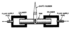 Dual Rams A dual ram assembly consists of a single ram with a cylinder at either end (fig. 10-4). Fluid can be directed to either cylinder, forcing the ram to move in the opposite direction. The ram is connected through mechanical linkage to the unit to be operated. A four-way directional control valve is commonly used to operate the dual ram. When the control valve is positioned to direct fluid under pressure to one of the cylinders (lets say the left one), the ram is forced to the right. This