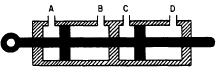 Tandem Cylinders A tandem actuating cylinder consists of two or more cylinders arranged one behind the other but designed as a single unit (fig. 10-9). This type of actuating cylinder is used in applications that require two or more independent systems; for example, power-operated flight control systems in naval aircraft.The flow of fluid to and from the two chambers of the tandem actuating cylinder is provided from two independent hydraulic systems and is controlled by two sliding spool directional control valves. In some applications, the control valves and the actuating cylinder are two separate units. In some units, the pistons (lands) of the two sliding spools are machined on one common shaft. In other applications, the valves and the actuator are directly connected in one compact unit. Although the two control valves are hydraulically independent, they are interconnected mechanically. In other units, the two sliding spools are connected through mechanical linkages with a synchronizing rod. In either case, the movement of the two sliding spools is synchronized, thus equalizing the