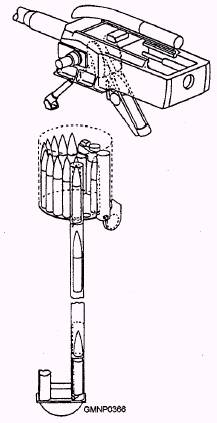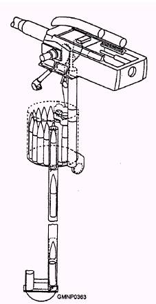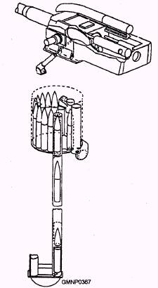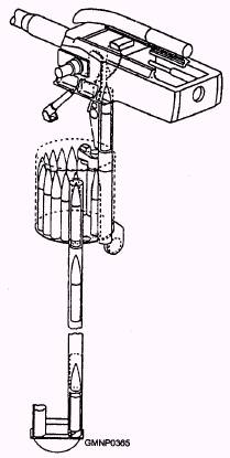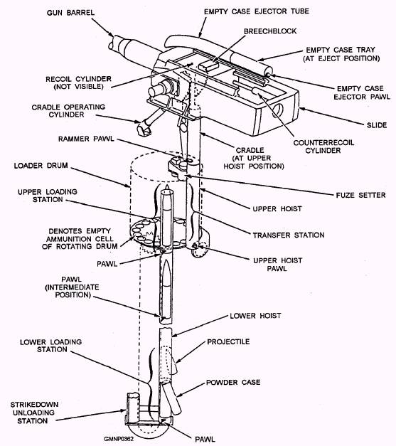 Loading Sequence Usually at the start of a load-and-fire operation, the rotating drum already has a compliment of ready service ammunition. If not, the magazine crew immediately
