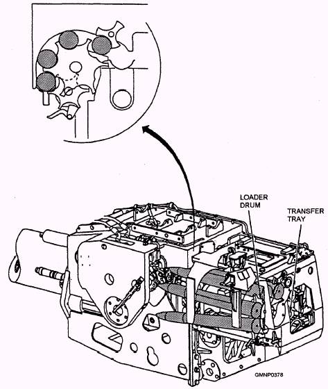 Figure 6-31.-Movement of rounds in the loader drum. |